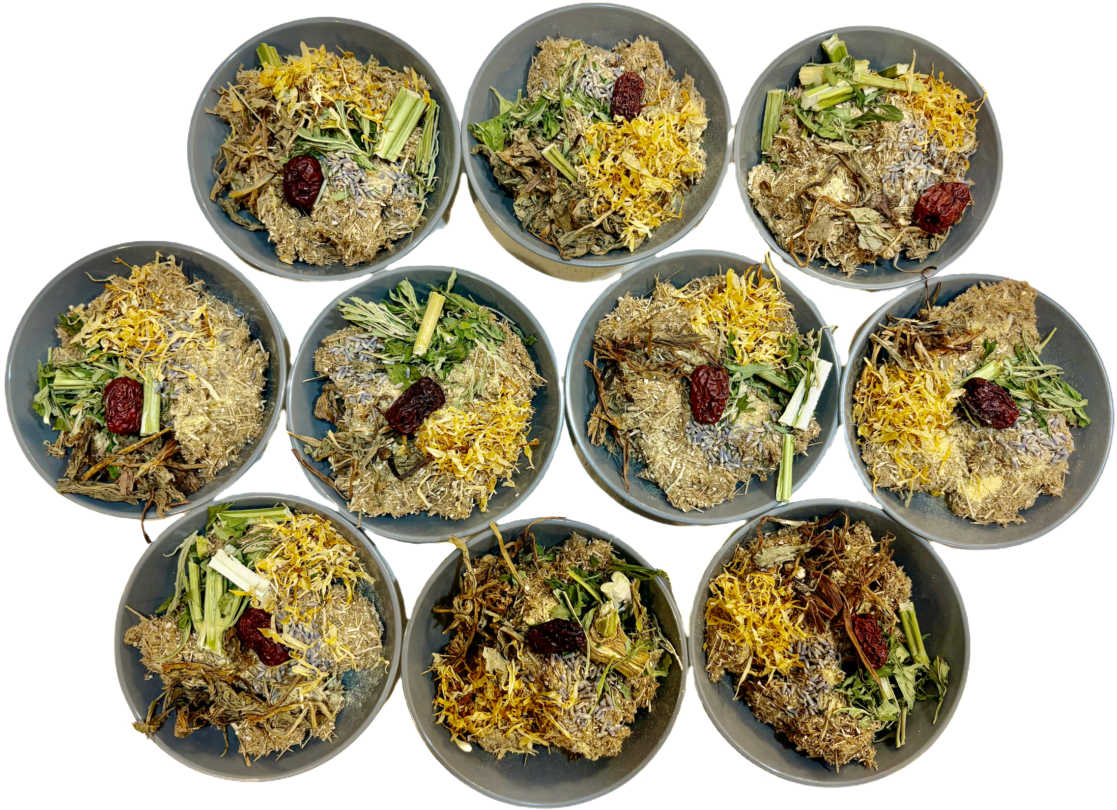※全てのコースでよもぎは20g入っていますがその他の薬草やハーブに関しましては茎や根などでgが変わってきます。
